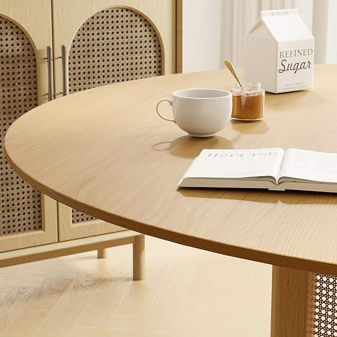 - 【Modern Style】 With its round design and rattan legs, this large kitchen table not only adds a distinctive element to the table's overall look, but also accentuates the delicate wood grain texture, which ensures sophistication and improves load-bearing capacity. With a simple yet stylish design that is perfect for casual dining or entertaining, whether it's in the kitchen or the living room.