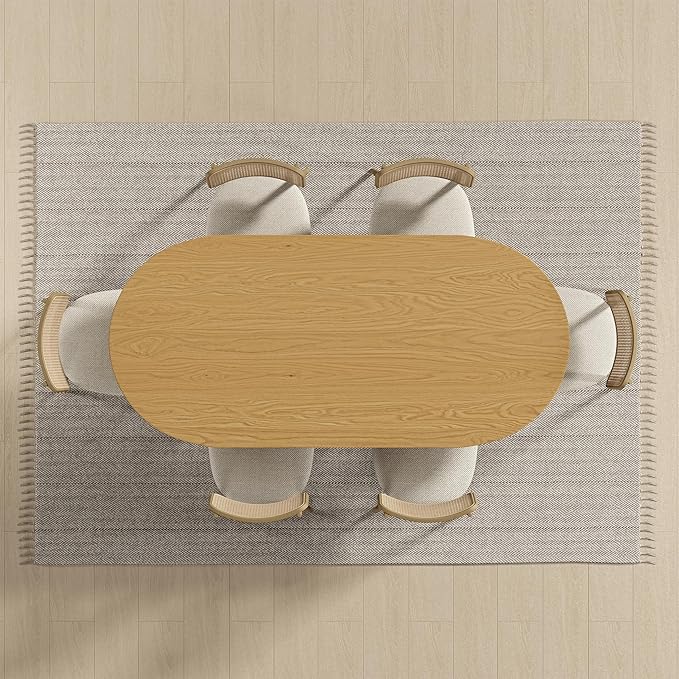 - 【Modern & Stylish Design】Inspired by Art Deco design, this oval dinning table combines gorgeous arched base and natural wood grain texture, offering a clean and sophisticated look, which makes the modern dining table a stunning centerpiece for any dining space.
