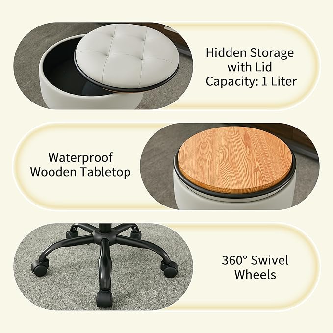 - Swivel Stool with Storage: This rolling chair offers convenient storage beneath the seat, perfect for organizing your makeup tools when used as a vanity stool, or for storing tools and parts when used in the garage. It also provides easy access to your belongings at your workplace, allowing you to store items underneath the stool and keep them within reach as you move around