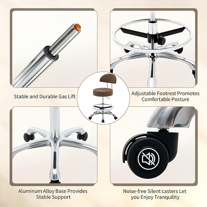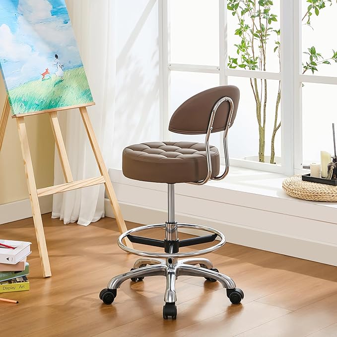 - Multi-Purpose Stool for Home and Work: This rolling stool features adjustable height, a footrest, and back support to accommodate different tasks and users. Suitable for home use at vanities, desks, or kitchens, it offers easy mobility and fits various room styles. In professional settings such as offices, nail salons, barbershops, tattoo studios, beauty salons, medical facilities, or retail spaces, it provides stable seating and supports comfortable positioning during use