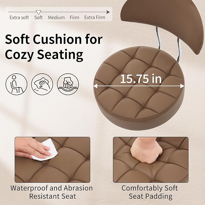 - High Quality and Durable Fabric: The seat cushion of our swivel stool is crafted from high-quality faux leather that is water-resistant and easy to clean with a damp cloth. Both the seat and backrest are padded with high-density foam, providing lasting comfort even during extended periods of use