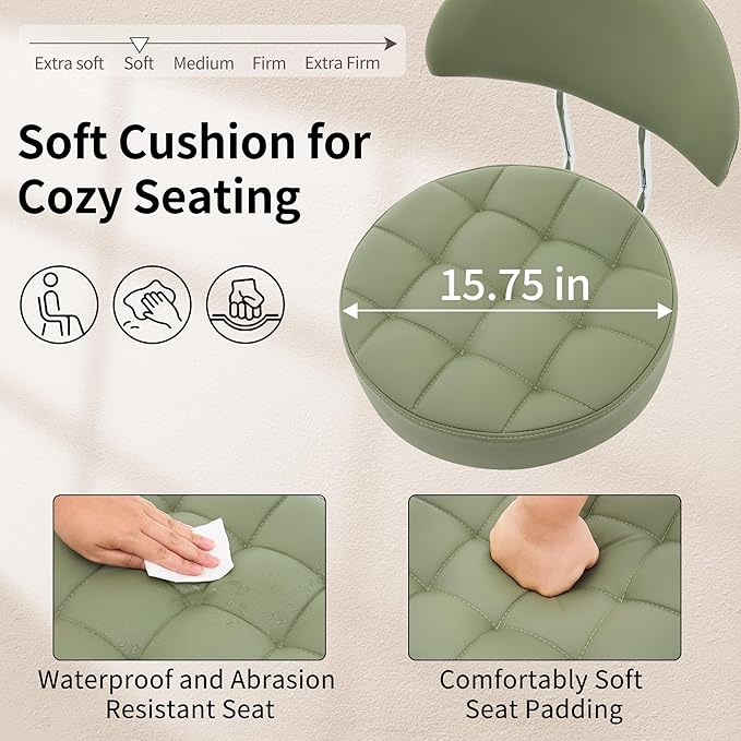 - High Quality and Durable Fabric: The seat cushion of our swivel stool is crafted from high-quality faux leather that is water-resistant and easy to clean with a damp cloth. Both the seat and backrest are padded with high-density foam, providing lasting comfort even during extended periods of use