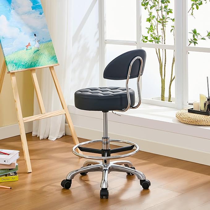 - Multi-Purpose Stool for Home and Work: This rolling stool features adjustable height, a footrest, and back support to accommodate different tasks and users. Suitable for home use at vanities, desks, or kitchens, it offers easy mobility and fits various room styles. In professional settings such as offices, nail salons, barbershops, tattoo studios, beauty salons, medical facilities, or retail spaces, it provides stable seating and supports comfortable positioning during use