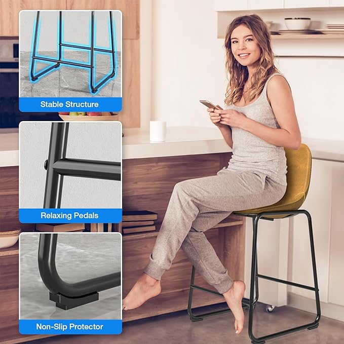 Rfiver Pu Faux Leather Bar Stools Set of 2, Industrial Pub Barstools with Back and Footrest, Modern Armless Bar Height Stool Chairs (Yellow, 24" Counter Chair x3)