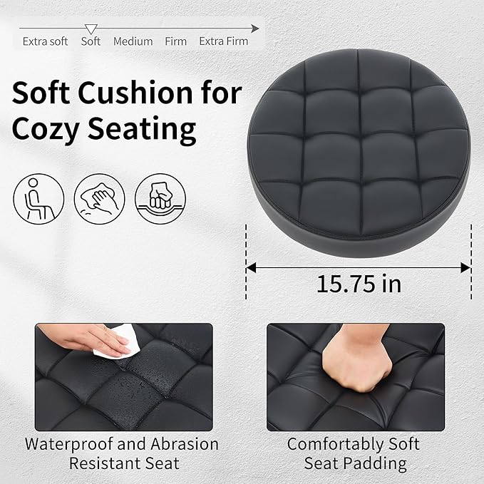 - High Quality and Durable Fabric: The seat cushion of our swivel stool is crafted from high-quality faux leather that is water-resistant and easy to clean with a damp cloth. Both the seat and backrest are padded with high-density foam, providing lasting comfort even during extended periods of use