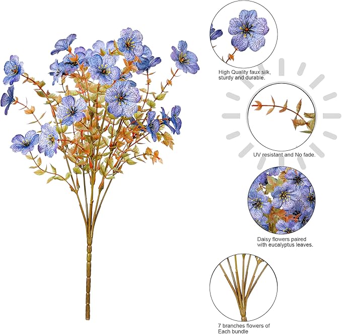 - Daisy Flowers with Eucalyptus Leaves: Elevate your home's ambiance with these 12 bundles of daisy flowers, colorful flowers with green leaves, infuse natural beauty into your living spaces.