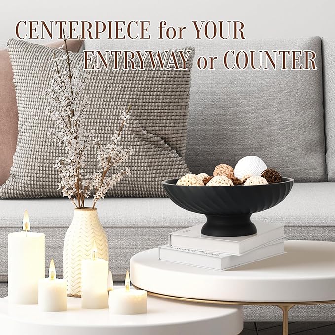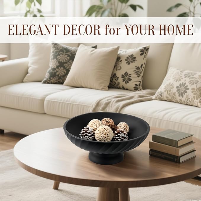 Large Resin Pedestal Decorative Bowl - Modern Fruit Bowl for Kitchen Counter - Handicraft Bowls for Home Decor - Key Bowl for Entry Table,Matte Black