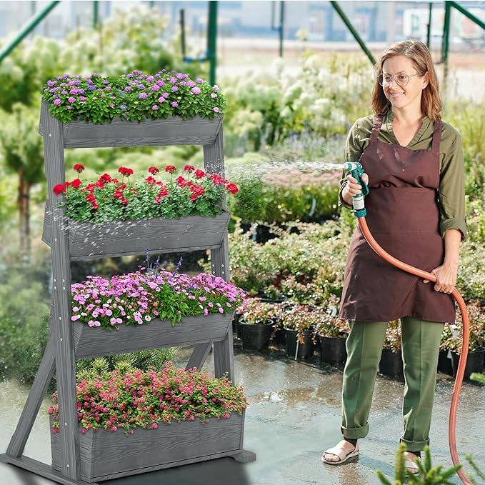 DoCred Vertical Wooden Raised Garden Bed, 4 Tier Garden Planters Freestanding Wood Plant Stand Flower Rack Wooden Planter Box for Plants Herbs Flowers Vegetables Outdoor Indoor Gardening