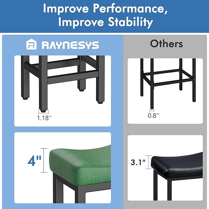 - 【Reliable Structure】Raynesys counter stools have a new stable structure design, which can effectively improve safety during use. Upgrade barstools for kitchen counter has solved the problems of structural shaking, splitting, and falling apart. Barstools set of 2 are equipped with leveling feet, which can be used on uneven ground to maintain balance and reduce shaking.