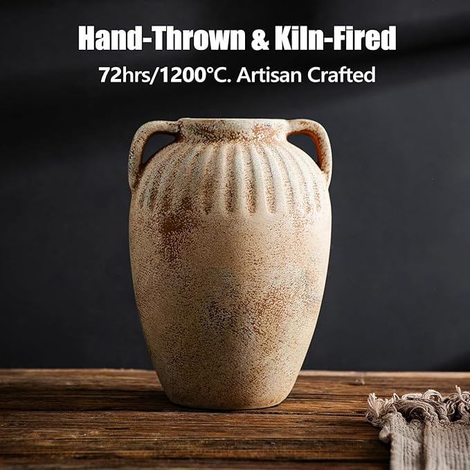 - 【Grand Rustic Vase, Multi-Scene Star】This 8.3-inch tall vase for floor elevates home and kitchen decor spaces—style with entryway, fireplace mantel, kitchen counter, or coffee tables decor for living room. Perfect for apartment, bookshelf, or office desk decor, its antique decor presence creates instant artwork impact.
