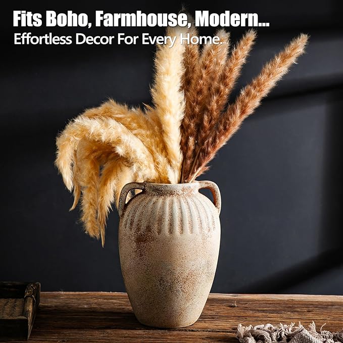 - 【Style-Blending Masterpiece】This farmhouse vase showcases rustic simplicity, its essence merges flawlessly with boho, vintage, coastal, western, and mid century modern home decor aesthetics. Designed for home office essentials and room accessories, it unifies home décor accents theme.