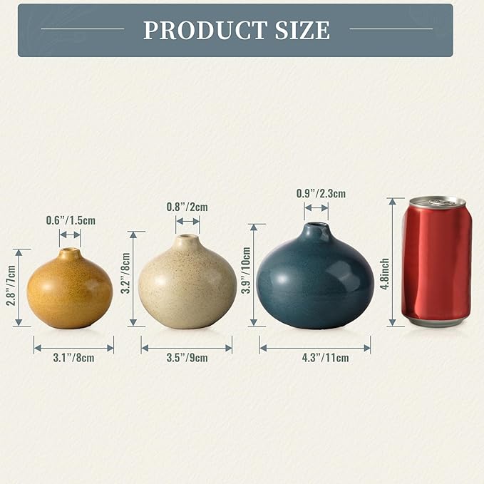 - 【Small Vase】 This set includes three mini flower vases in sizes 4.3" x 3.9", 3.5" x 3.2", and 3.1" x 2.8". Perfect as a centerpiece or displayed individually, these small flower vases bring modern farmhouse and minimalist charm to any room.