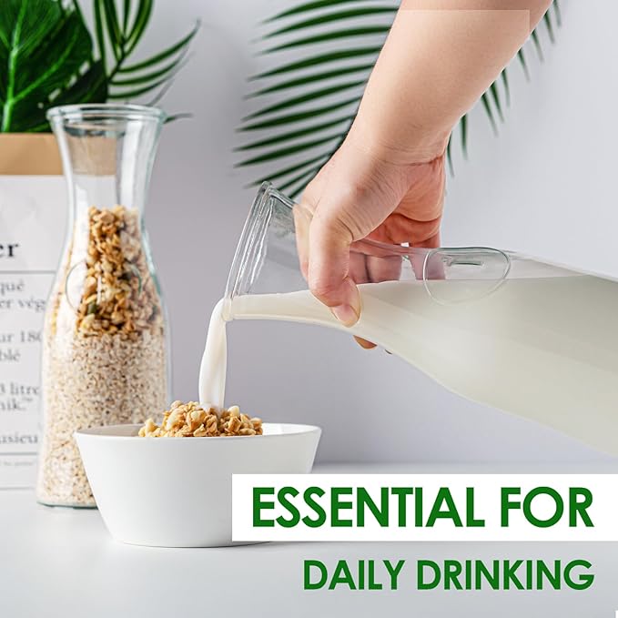 - MULTIPLE USES FOR BEVERAGE: Using the beverage pitcher carafe as a bedside water carafe, daily milk container, storing or making cold brewing in refrigerator, and keeping it fresher for a longer time, also as drink pitchers for brunch, parties, mimosas bar, bridal shower, baby shower, decorations and hosting essentials. Besides, the glass carafe pitchers can be used for dispensing detergent and softener for easy pouring in the laundry room.