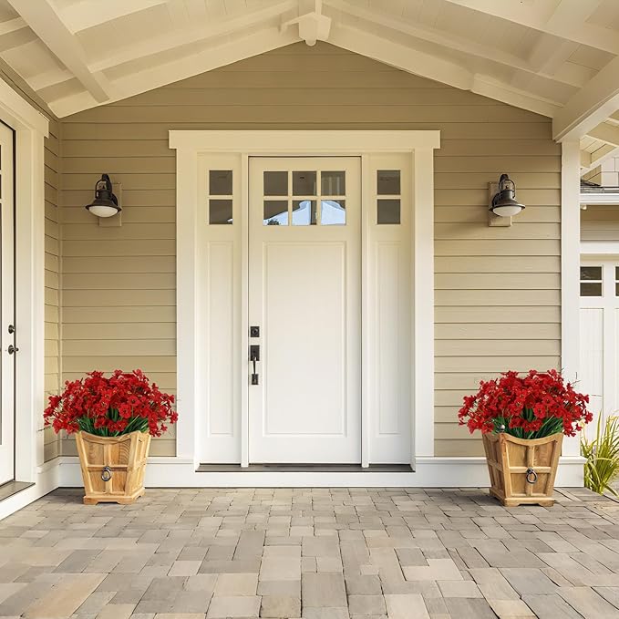 - 【 Happy mood 】These fake outdoor flowers bring the beauty of nature into your life. These flowers have lush green leaves and bright colors, making people feel happier and their lives more exciting