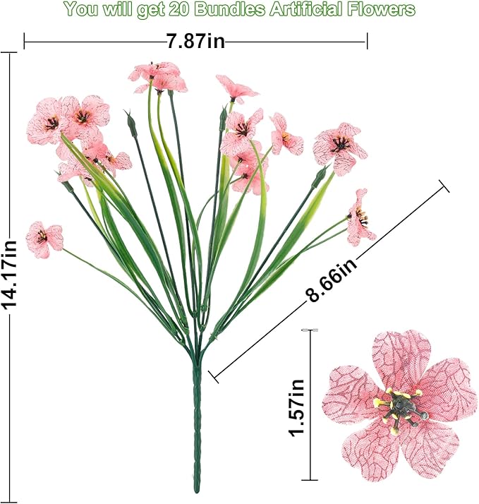 20 Bundles Artificial Flowers for Outdoors or Indoor Garden Home Decoration,No Fade Fake Flowers Faux Plants for Decoration Hanging Planters,Porch Window Box Garden Wedding Farmhouse Fake Plants