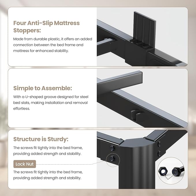 - Mattress Stoppers Included: Provide with 4 corner stoppers to keep your memory foam mattress securely in place on the twin size platform bed frame