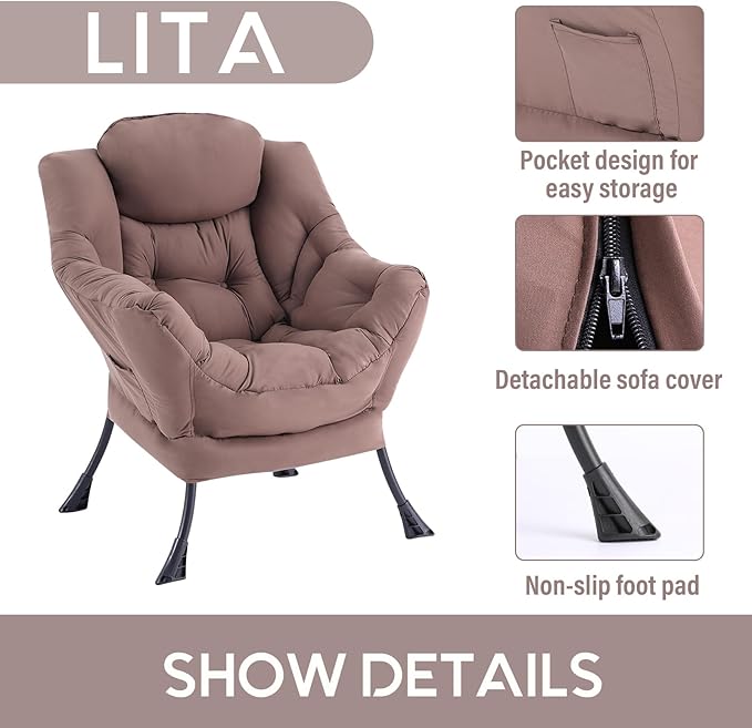 - ERGONOMICALLY DESIGN: This accent sofa chair offers enough support to your neck, back, waist and hip. While a small pocket on the right side of the lazy chair, let you hold mobile phone, books, newspapers at arm's reach, reasonable storage and convenient