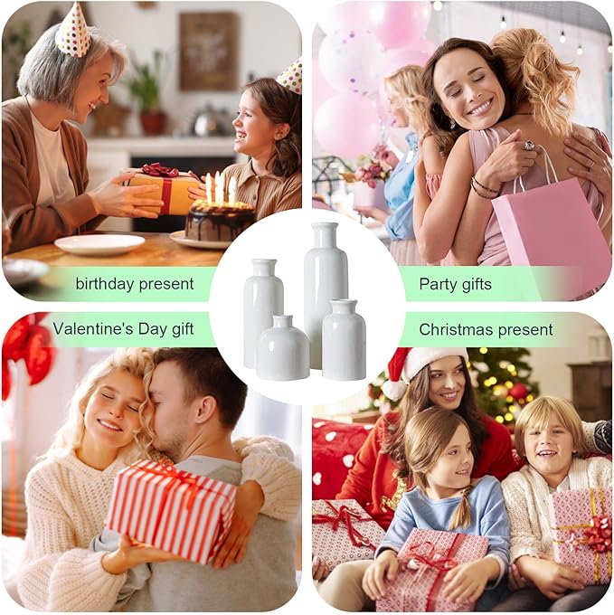 White Ceramic Vase Set, 10 Inch Farmhouse Decor Vase, Home Decorative Vases for Home Decor, Kitchen, Bedroom, Office, Living Room, Bathroom, Ideal Housewarming Gift (Modern White)