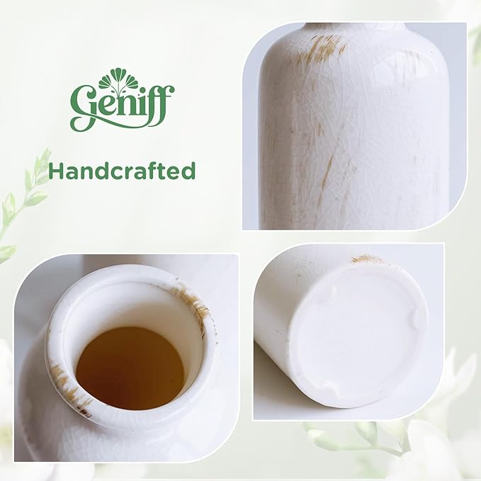 White Ceramic Vase Set, 10 Inch Farmhouse Decor Vase, Home Decorative Vases for Home Decor, Kitchen, Bedroom, Office, Living Room, Bathroom, Ideal Housewarming Gift(Old White)