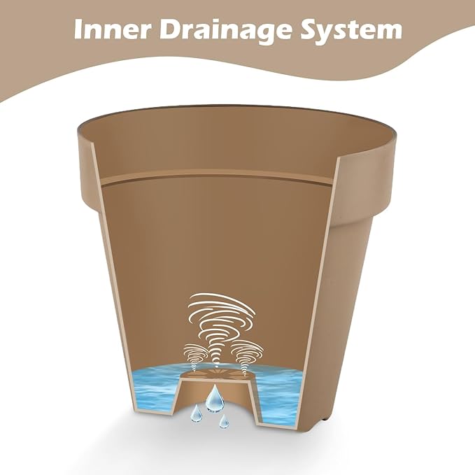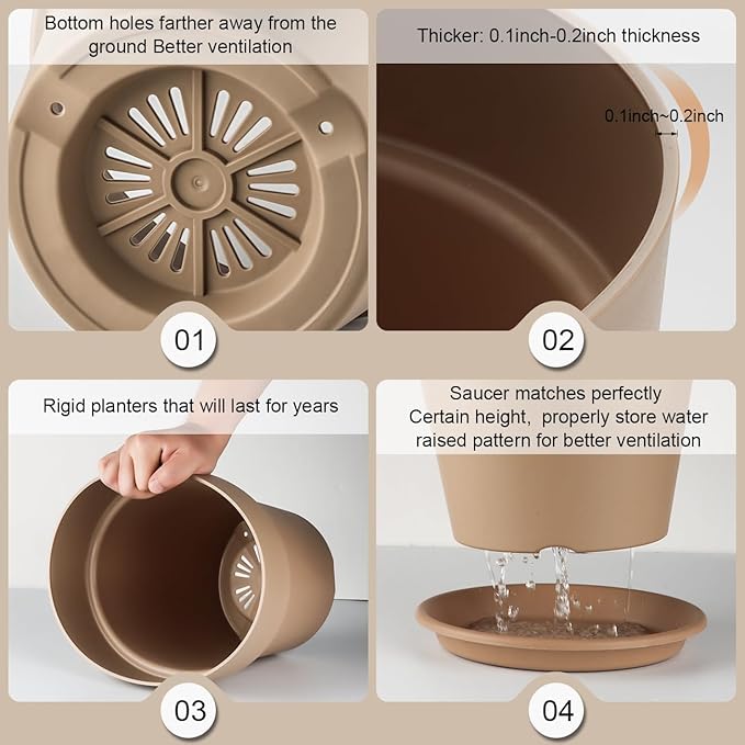 - 【Heavy-Duty, Built to Last】Made from thickened, BPA-free PP plastic, these planters are ultra-sturdy, crack-resistant, and fade-proof. A textured base locks into the saucer, keeping your pots secure even when bumped or moved.