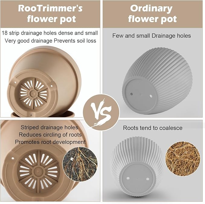 - 【18-Hole Drainage System for Healthy Roots】Each pot features 18 carefully placed drainage holes to boost airflow and drain excess water fast—preventing root rot and promoting healthy, thriving plants. No more soggy soil or fungus problems! The volume of these three 8/9/10inch planters is 1.1 + 1.6 + 2.1 gal.