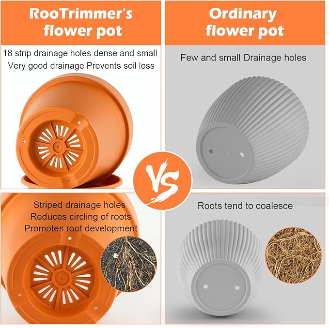 - 【Elevated Airflow Base + Non-Slip Saucer】The raised bottom lifts roots off the ground for better airflow and dryness. Paired with a custom-fit saucer featuring a non-slip texture, it catches overflow neatly—perfect for hardwood floors or desktops.