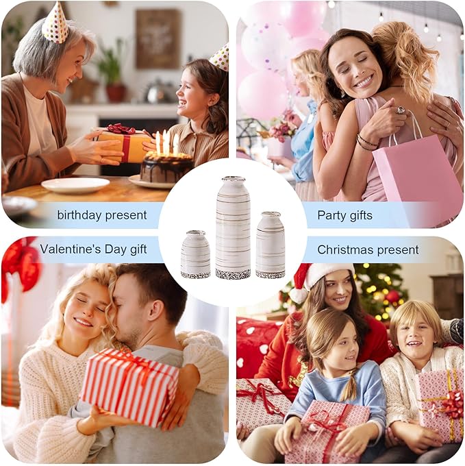 - [Versatile Home Decor, Multiple Display Options] This decorative vase have three sizes (8.66", 5.9", 3.93" tall) allow for creative arrangements on mantels, shelves, coffee tables, entryways, or as a centerpiece. Mix and match with dried flowers, pampas grass, or eucalyptus for a personalized touch.