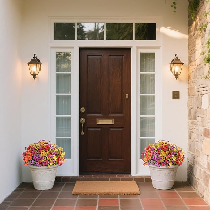 - Realistic Outdoors Plants: These fake outdoor flowers are real looking, these artificial branches exude a stylish and authentic appearance, rendering them ideal decorations for your outside garden, yard, patio, balcony, front door, porch, flowerbed, hanging planters for outdoor plants, pot and window box, both indoors and outdoors.