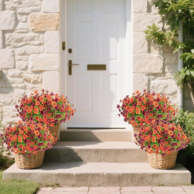 - Low Maintenance and Creativity: Faux outdoor flowers offer a convenient and effortless solution to enhance the aesthetic appeal and vibrant ambiance. There are various vibrant colors to choose, no watering needed and adjustable branches make DIY easier. Create a bouquet style as you like.