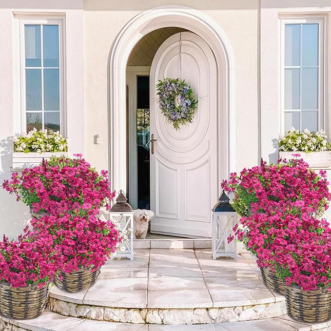 - Indoor & Outdoor Versatility: Whether you're decorating your front porch, garden, balcony, living room, or office space, these faux flowers add a burst of color anywhere—without the hassle of watering or trimming.