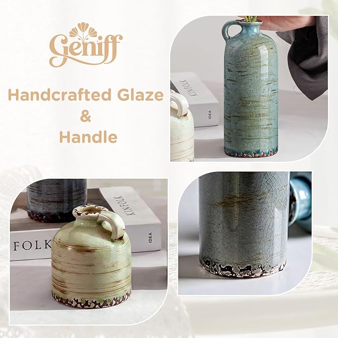 Ceramic Vase Set of 3 – Handcrafted Modern Farmhouse Decorative Vase, Neutral Pottery for Pampas Grass, Flowers, Table Centerpieces, Living Room, Mantel & Shelf Decor – Multicolor