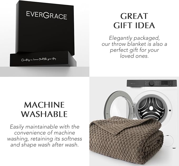 EVERGRACEHOME Chunky Chenille Knit Throw Blanket for Couch, Soft Luxurious Moss Stitch Blankets for Bed, Cozy Decorative Farmhouse Knitted Throws for Sofa, Mocha Brown, 50" x 60"