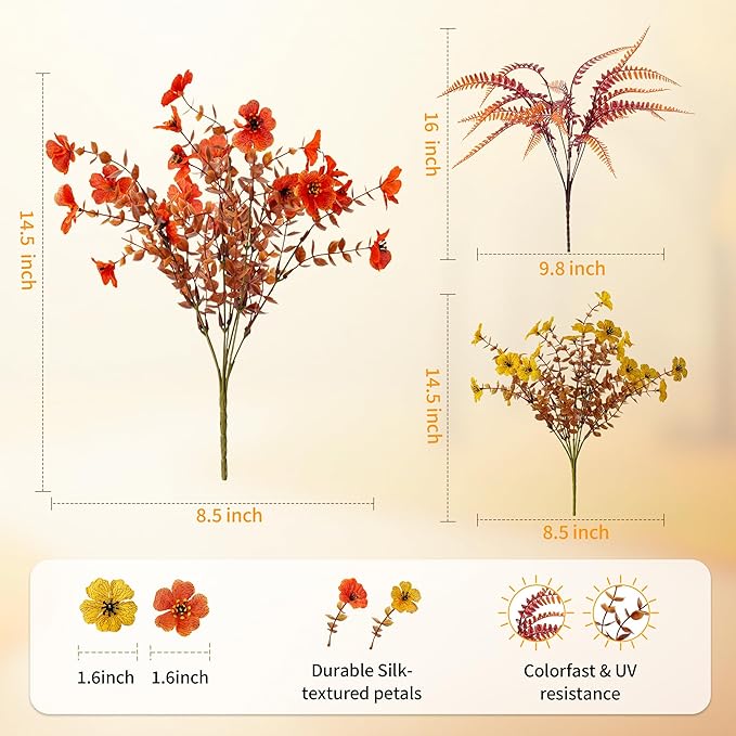 - Versatile Decor: Whether for faux mums for outdoor planters, Thanksgiving centerpieces, or gifting, these artificial mums add vibrant autumn flair anywhere.