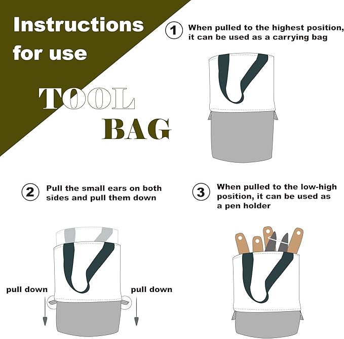 - UniqueTool Bag:Features a distinctive two-section extension function, saving storage space and portable. Pull down the outer layer as a tool holder for easy use; pull up to storage the tools or lift to anywhere you want.