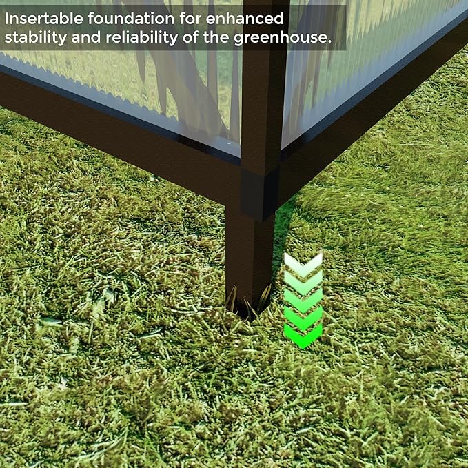 - 【PREMIUM MATERIALS & PATENTED DESIGN】Built with a robust matte charcoal gray aluminum alloy frame, high-strength, shatter-resistant polycarbonate panels, and patented plastic components and rainwater gutter system. Designed for superior durability and weather resistance