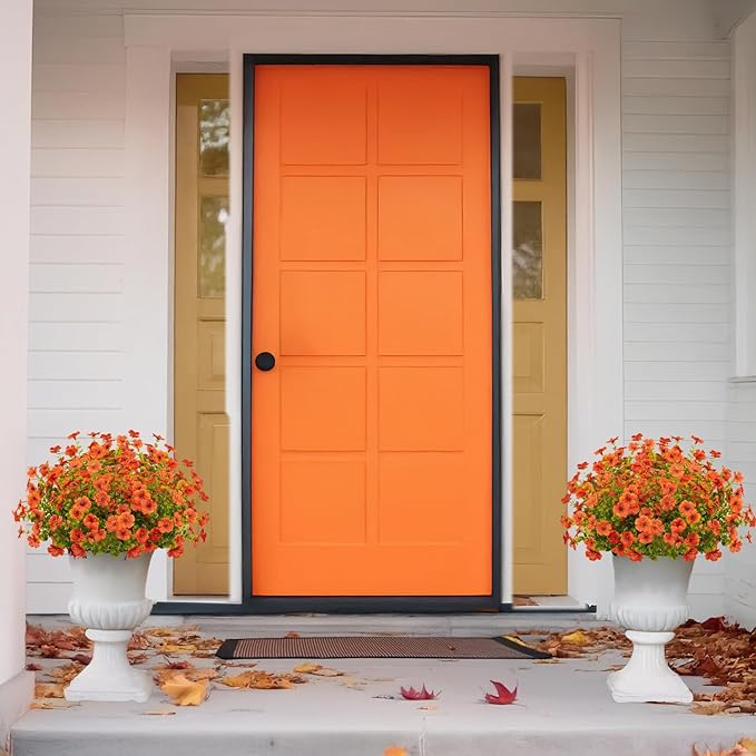 16 Bundles Artificial Flowers Outdoor Spring Summer Decoration Fake Silk Colorful Daisy Eucalyptus Realistic UV Resistant Outside Faux Plants for Garden Porch Window Box Home Decor (Orange)
