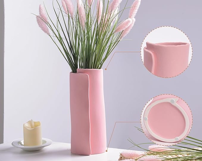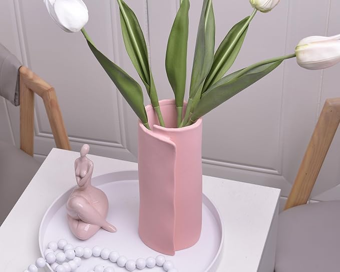 - [Ceramic Vases Size] 8.9"(H) x3.7" (D), the pink flower vase pairs beautifully with tulips, pampas grass, eucalyptus stems,and other greenery, You will be surprised when you insert the flowers, perfect for a bouquet of flowers or as a desktop accessory