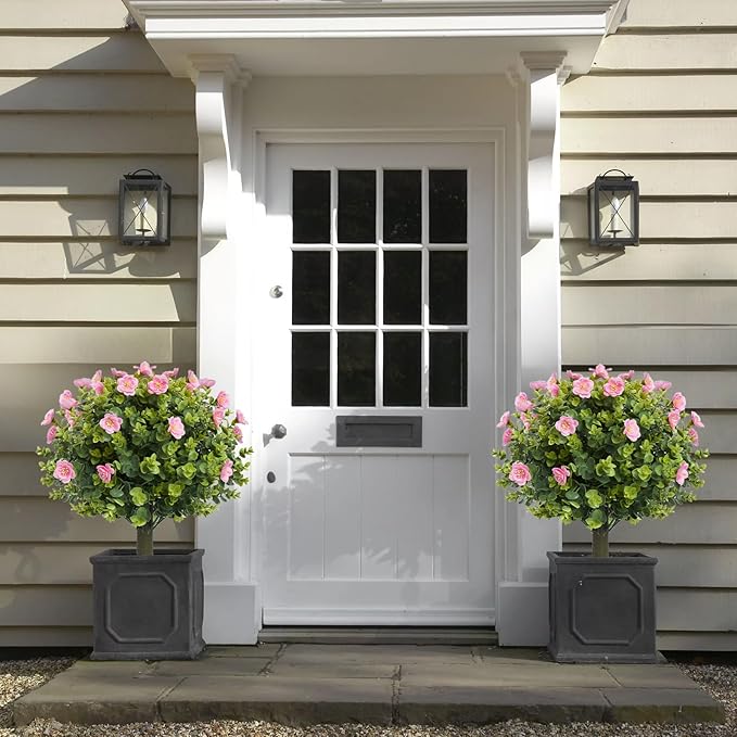 - 【Versatile Design】Push stems of topiary trees artificial outdoor directly into garden soil, or place artificial outdoor plants in pots for instant landscaping. Ideal for creating outdoor plants artificial for porch displays or blending faux flowers for outdoor planters with real greenery.