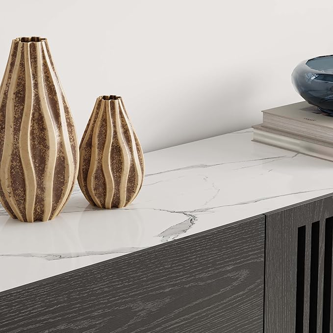 - Fully Assembled TV Console: This slatted wood TV cabinet comes fully assembled, saving you time and effort. No complicated instructions or tools required, upon receiving it, you only need to install the 4 metal Legs of the cabinet