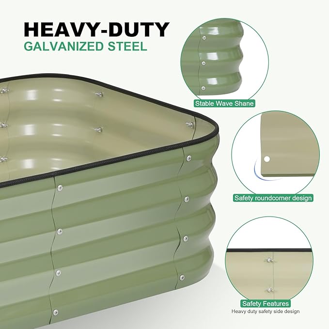 - 【Heavy-Duty Galvanized Construction】Built with thick galvanized raised garden bed panels and reinforced with curved supports, these raised beds for gardening maintain their shape season after season. The rust-resistant coating makes this raised bed suitable for all weather conditions.