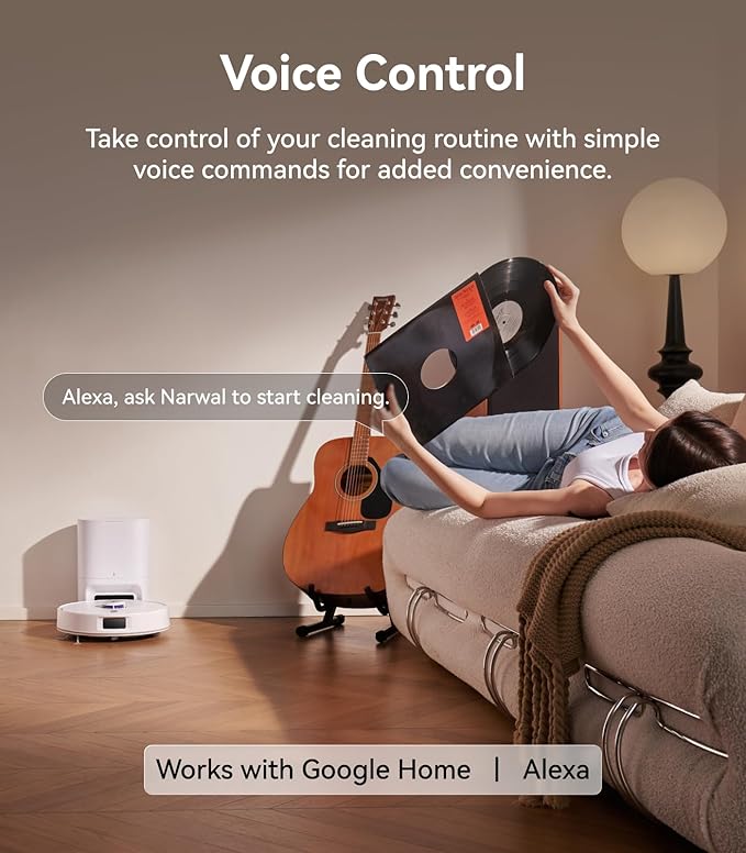 - Smart App & Voice Control: Control robotic vacuums Freo S anytime, anywhere via the Narwal app—adjust suction or mopping levels, set no-go zones, schedule cleanings, and more. Compatible with Alexa and Google Assistant for convenient voice control.