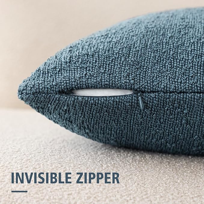 Foindtower Pack of 2 Textured Boucle Throw Pillow Covers Accent Solid Decorative Pillow Cases Cozy Woven Couch Cushion Case for Sofa Bedroom Living Room Home Decor 20x20 Inch Misty Blue