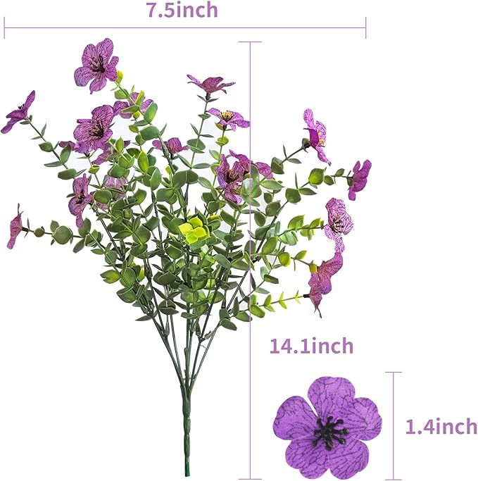- DIMENSIONS: Each artificial flower stem measures 14.1 inches in height and 7.5 inches in width, perfect for creating full, lush arrangements artificial flowers for outdoors outdoor faux plants