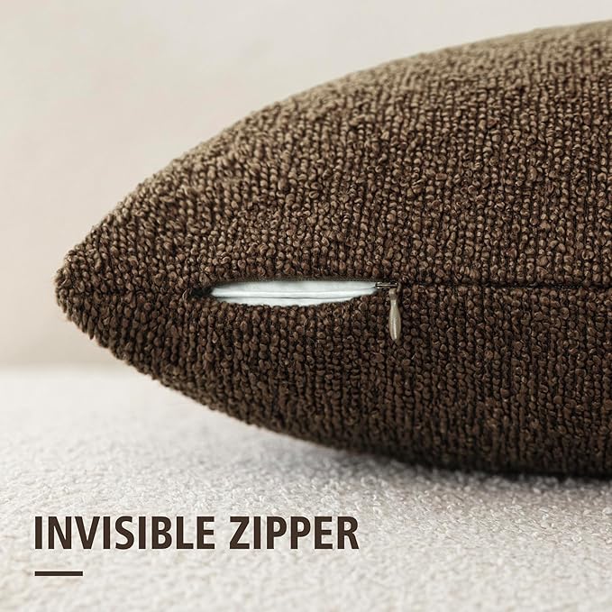 Foindtower Pack of 2 Textured Boucle Throw Pillow Covers Accent Solid Pillow Cases Cozy Soft Decorative Couch Cushion Case for Chair Sofa Bedroom Living Room Home Decor 18x18 Inch Chocolate