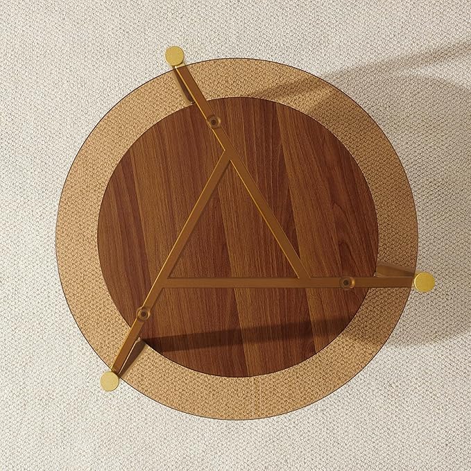 - Sturdy Material & Structure: Enjoy the blend of elegance and durability. The tempered tinted amber glass top is strong and easy to clean. The walnut - hued MDF shelf ensures stability. What truly sets it apart is the special golden metal support structure—artfully crisscrossing beneath the glass top, it delivers rock - solid support (keeping the table stable even under full loads) while doubling as a captivating artistic element, infusing industrial - chic flair. Together with the golden conical legs offering firm support, this combination crafts a durable end table perfect for daily use, merging practicality and aesthetic charm.