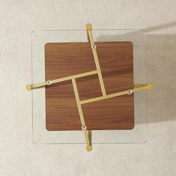 - Sturdy Material & Structure: Enjoy the blend of elegance and durability. The tempered tinted glass top is strong and easy to clean. The walnut - hued MDF shelf ensures stability. What truly sets it apart is the special golden metal support structure—artfully crisscrossing beneath the glass top, it delivers rock - solid support (keeping the table stable even under full loads) while doubling as a captivating artistic element, infusing industrial - chic flair. Together with the golden conical legs offering firm support, this combination crafts a durable end table perfect for daily use, merging practicality and aesthetic charm.