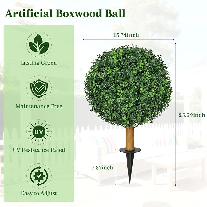 - Quick & Easy Installation: Equipped with a ground spike for convenience, this artificial boxwood plant is simple to install. Just attach the spike to the trunk and stake it wherever you like. Gently arrange the leaves by hand for a fuller, more natural look.