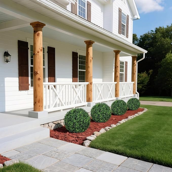 - Easy to assemble: Our fake boxwood ball plant comes with a ground spike. Easy to install in a few minutes. Simply attach the spike to the trunk, then stake it wherever you like, no tools required, and completely effortless.