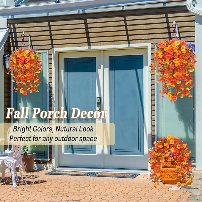 - Artificial Flowers for Outdoors: Get 4 pcs of realistic artificial Morning Glory. Featuring rich, vibrant orange and yellow blooms with fall leaves, perfect for creating lush fake fall flowers arrangements in pots. Instantly add vibrant color and life to any space