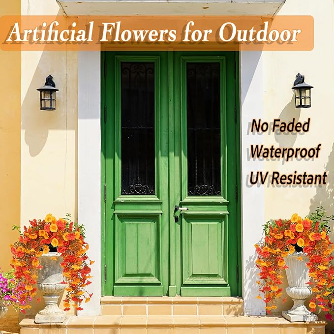 - Versatile & Effortless Decor: Easy to clean, arrange, and maintain! These fake outdoor flowers are perfectly suited for both indoor and outdoor decoration. Bring life to your home, balcony, walkway, office, hotel, or wedding with minimal effort. Ideal for daily outdoor decor, wedding arches, backyard parties, or seasonal displays, creating a welcoming vibe that’s simple to refresh